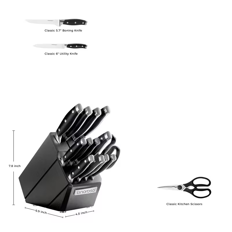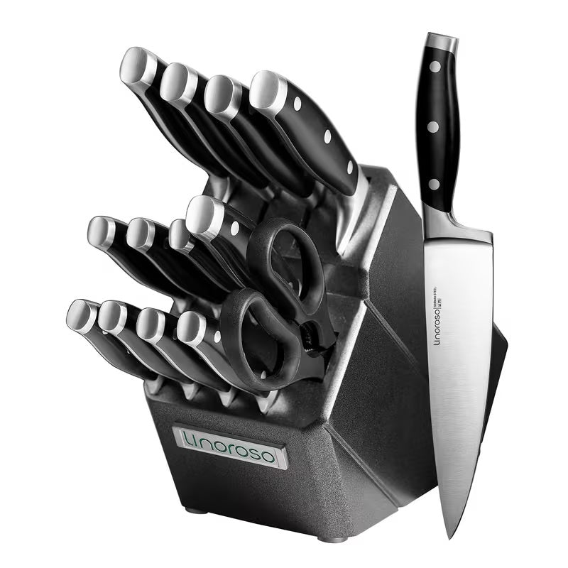 Line Set expands everyday kitchen work with tools suited for ingredients of varied density. The knives support consistent preparation. The knife block helps maintain order on the countertop. The scissors assist additional kitchen actions. All components follow a unified look.